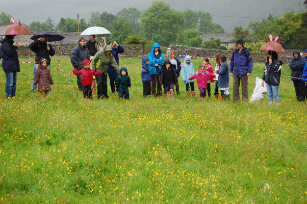 For the second year in a row Buckden villagers battled the elements to put on their traditional Gala, proceeds from which go to maintaining the Village Hall for use by the whole village and visitors to Upper Wharfedale. Despite continuous rain, a good crowd attended to see the Sheep Show and Fell Race and to listen to the authentic sound of the Lofthouse and Middlesmoor Silver Band. Delicious homemade cakes and jams were on offer as well as locally made handicrafts. Children of all ages tested their skills to win a coconut at the shy or to “Bat the Rat”. Locally sourced (and anonymously donated – thank you!) sausages in a bap were a big success as was the time-honoured tea room with more homemade fare. Buckden resident and former art gallery proprietor, Gordon Nowell, mounted an eye catching exhibition of photographs of the Dales and judged the photographic competition. Colourful commentary for the afternoon was provided by the ubiquitous Roger Ingham. This year’s gala dance will be held in the Village Hall on Saturday 5 July (tel. 760883). The village is most grateful to all individuals and businesses who supported this year’s event, in particular, Copper Dragon Brewery of Skipton the main sponsors.