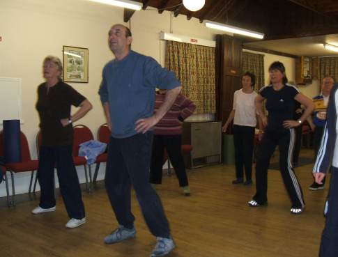 The weekly keep-fit sessions led by SAS trained fitness-instructor, Ted Salmon, are proving extremely popular, with the Institute filled to capacity on Tuesday evenings. Your intrepid reporter ventured into the Institute this Tuesday evening to try and snatch some pictures. The quality of the photos is not brilliant - the blurring is because the participants move so fast.
