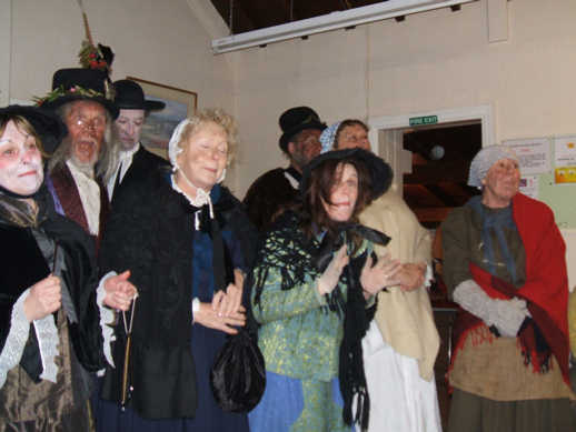 with Penny Plain Theatre Company The first quiz of the Year got off to a flying start with a performance from the Penny Plain Theatre Company from Grassington. Rumours that the bloke with the accordion is John Cowpe have not been substantiated. The quiz that followed was also memorable with the first round - Bev's revenge - particularly challenging! The evening finished with the customary Jacob's Join, as as always, the proceeds went to the Air Ambulance. |
