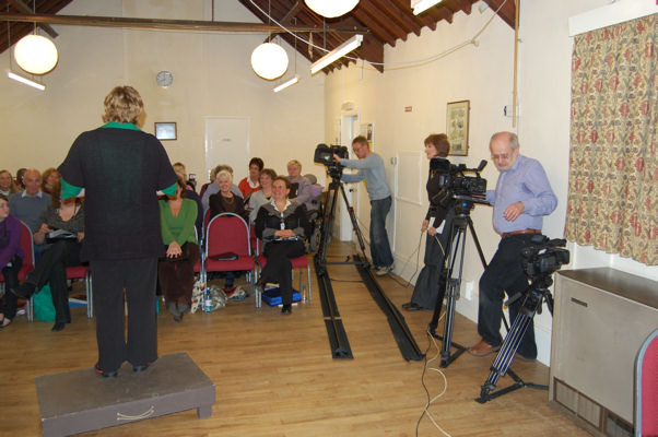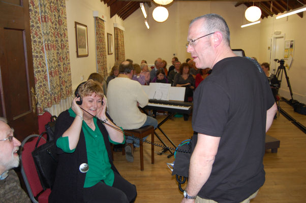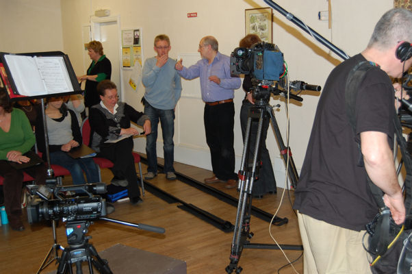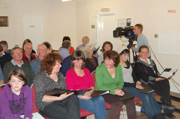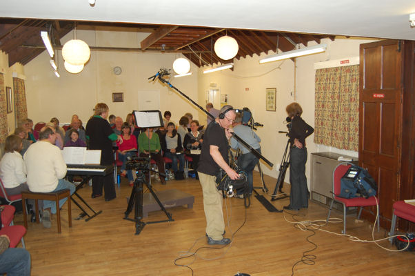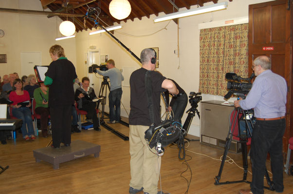 Buckden Singers were recently filmed in rehearsal, for a forthcoming BBC TV programme "In Search of England's Green & Pleasant Land" to be broadcast in April. The pictures below are from the evening of the filming.