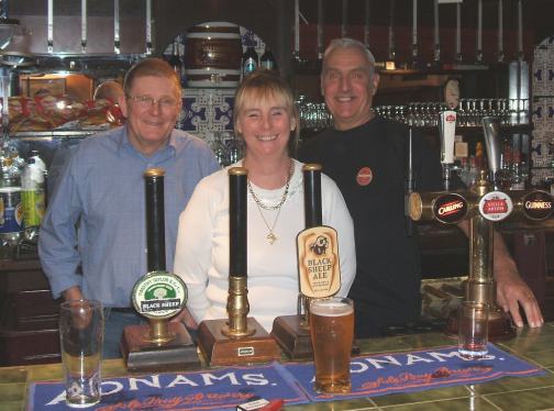 At long last the Baskerville tenure at the Buck Inn has come to an end. The pub opened tonight under new management after two days of intensive cleaning by the new management. The new team (pictured below) are husband and wife team, Peter & Julie Brewer, and Alf Barrett. They come to the Buck from the Three Horseshoes in Graveley, near St Neots in Cambridgeshire.