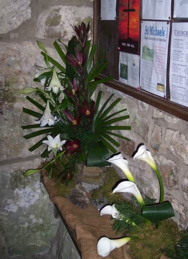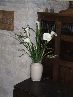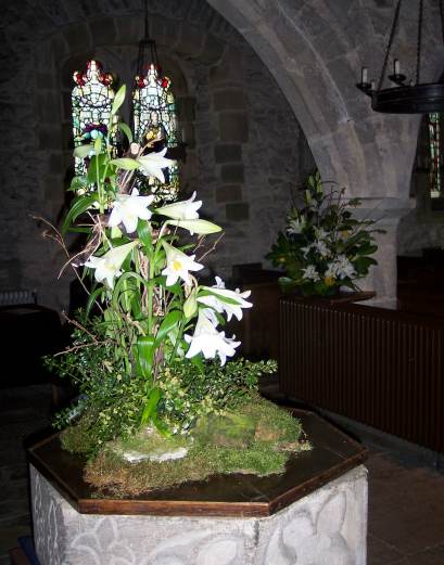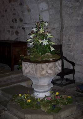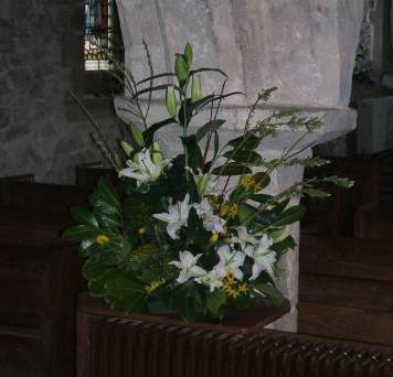 Once again the church of St Michael & All Angels at Hubberholme has been beautifully decorated for Easter. The pictures below are of some of the floral arrangements and of the dedicated lilies. Thanks to all who made dedications and to all who helped in any way.