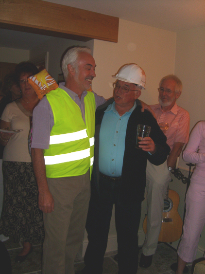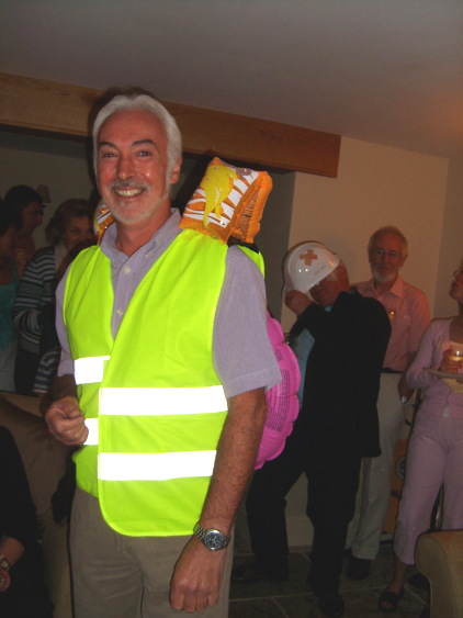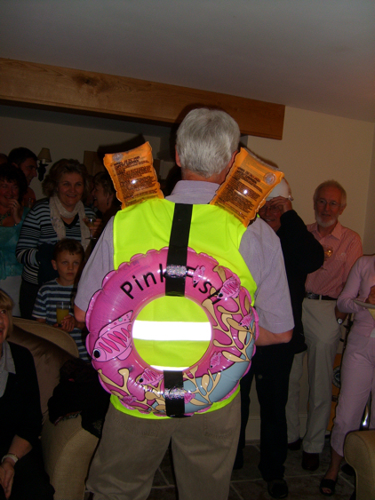 Regular visitors will recall the occasion when a certain villager, returning from a party in the village, inadvertently fell into Buckden Beck. This incident gave rise to the original Buckden Lifebelt Appeal. Concerned that the near disaster might be repeated after a party on Friday evening, Bev's friends designed a patent buoyancy aid system to ensure that, in the event that Bev's aquatic adventures were repeated, he would not come to any harm.