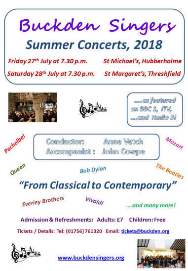 Buckden Singers website from 19.30 on