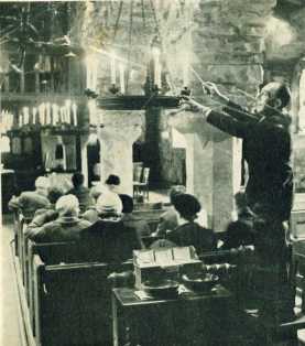 | Lighting the candles before the Induction Service. |