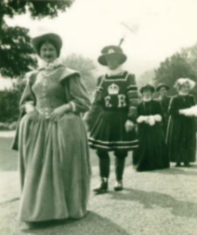 The Pageant - 1953 In June 1953, a pageant was held to celebrate the Coronation. The Pageant was set in the time of Queen Elizabeth 1 with local people playing historical roles. It was organised by Mr. Jackson, formerly of Grange Farm, who provided all the costumes. There were demonstrations of traditional crafts such as wool carding, spinning and spoke shaving, dancing on the village green and fireworks at the end of the day. |