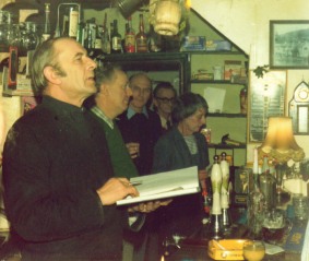 Rev John Potter conducting the auction at the Land Letting. Rev. Potter was vicar from 1978 - 1983