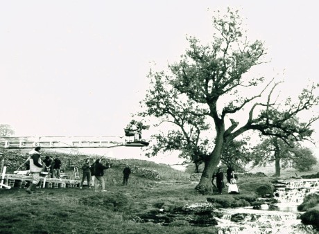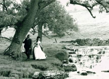 During 1991, the film Wuthering heights was shot on location in and around Upper Wharfedale. This picture shows Ralph Fiennes & Juliette Binoche beside Cray Gill. |